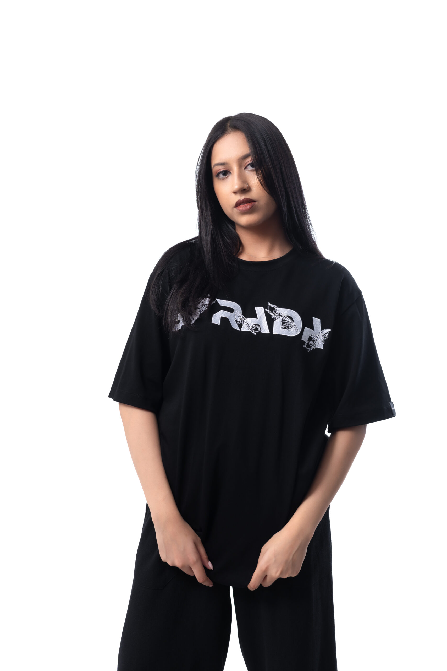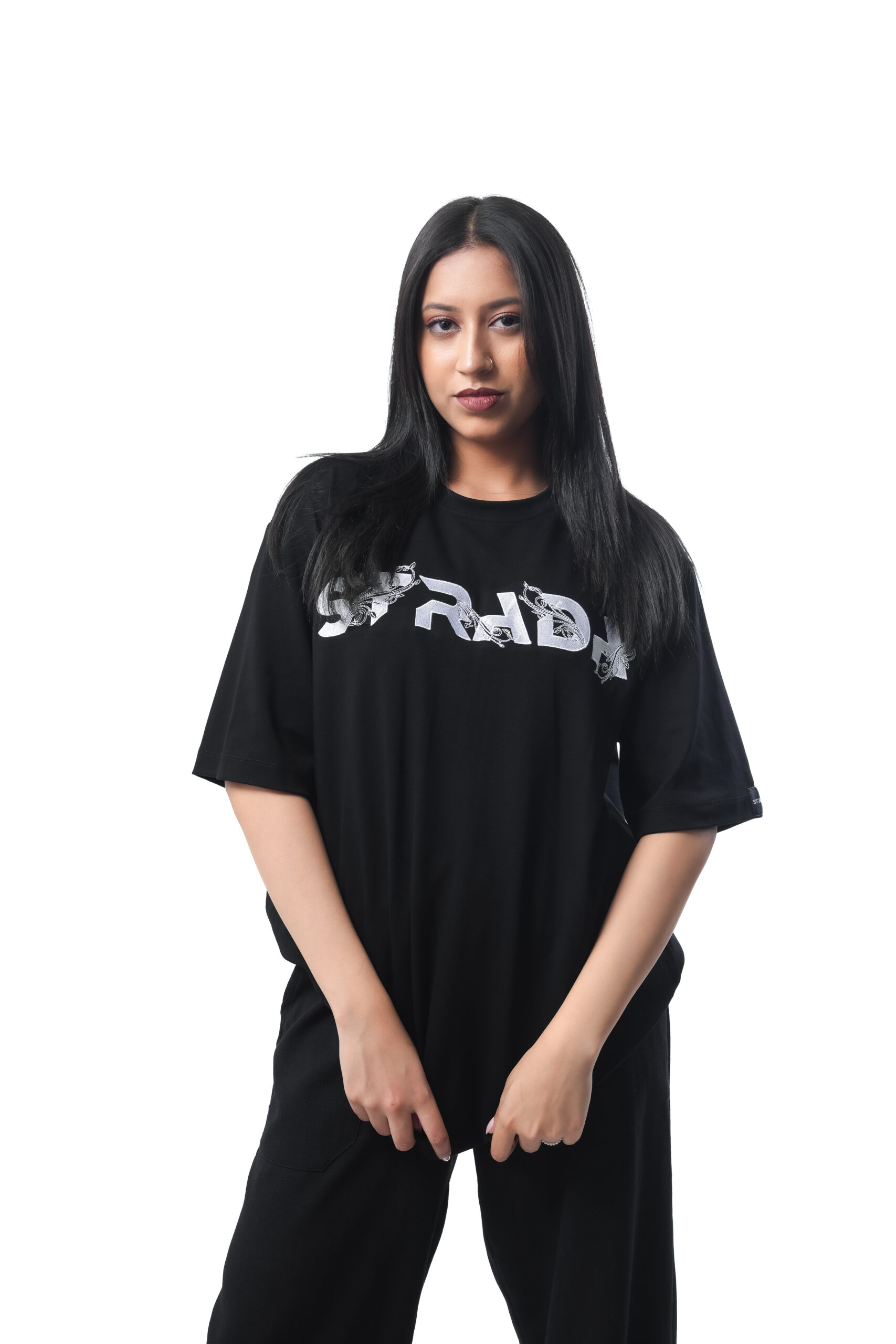 The Strada Embroidery Oversized Tee combines comfort and style effortlessly. Crafted from soft, breathable fabric, this relaxed-fit tee features minimalist embroidery of the Strada logo for a touch of elegance. Perfect for casual outings or lounging, it pairs well with jeans or shorts for a laid-back, trendy look.